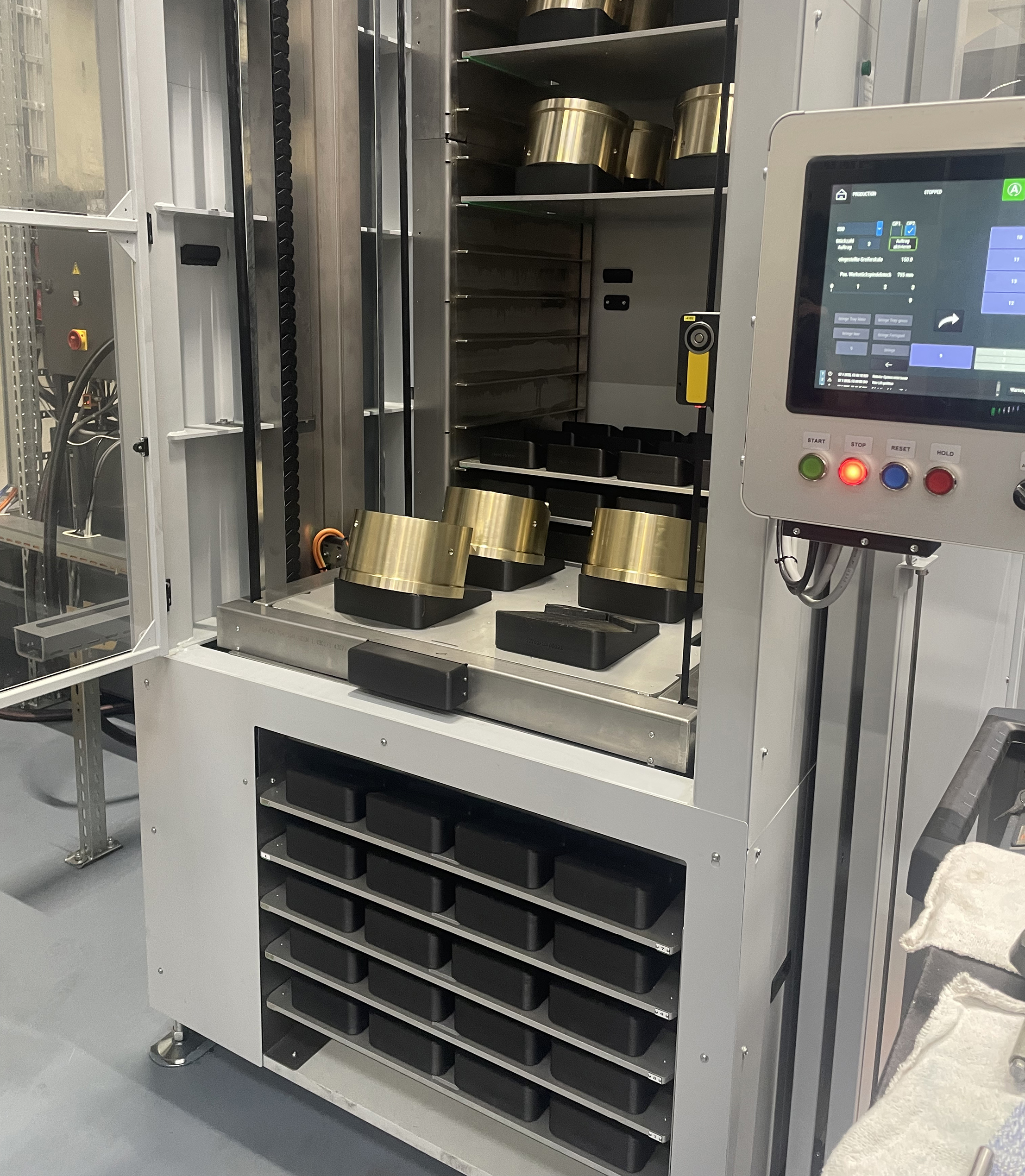 The automated system holds a total of 12 pallets. Depending on the size of the parts, between 36 and 100 workpieces can be set up