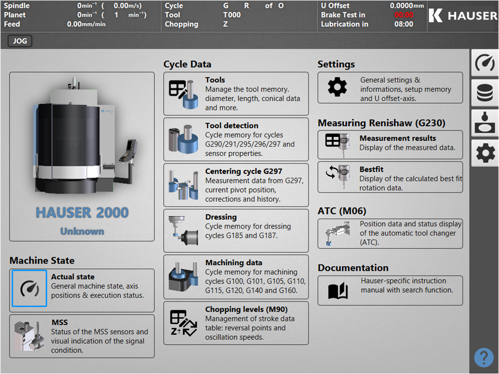 通过WHITE 解决方案,克林伯格提供了专为豪瑟 2000 系列坐标磨削设计的创新型用户友好界面。该软件采用了最新的数控技术,即功能强大的 FANUC 30i-B,确保了使用的简便性和最高的工艺可靠性。
